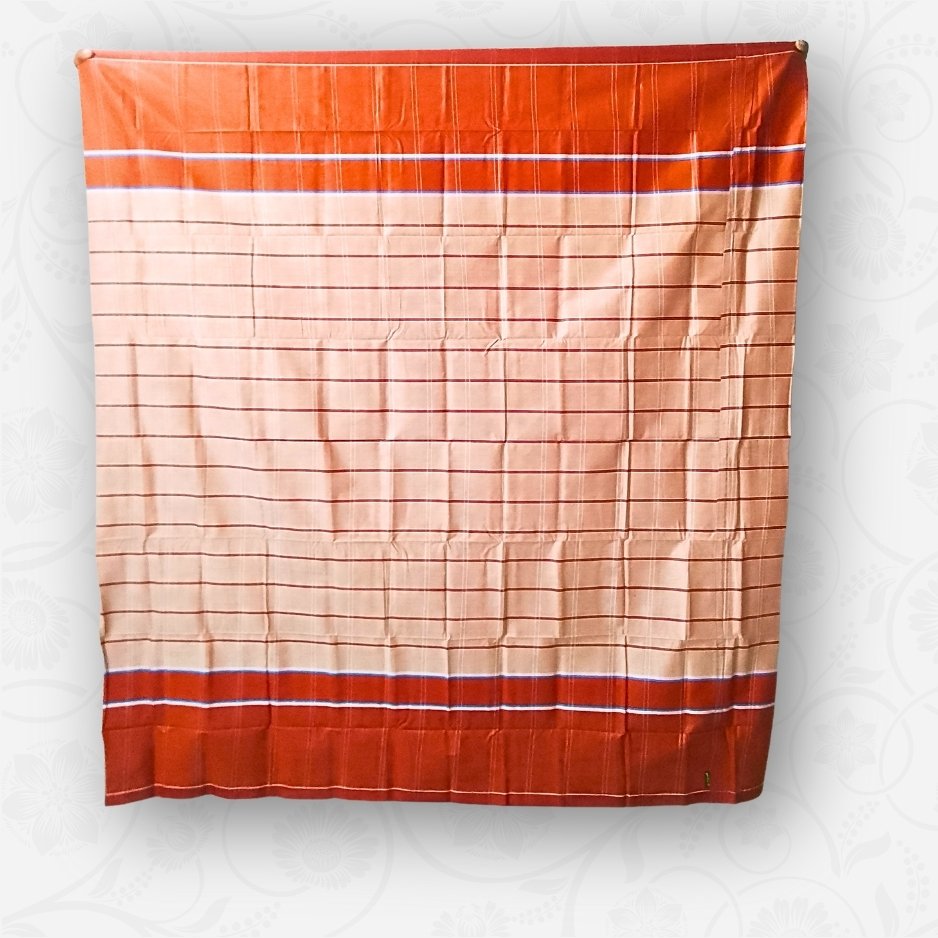 Beige with Red-Orange Border & Stripes, Eco 100% Color Lock Cotton Lungi