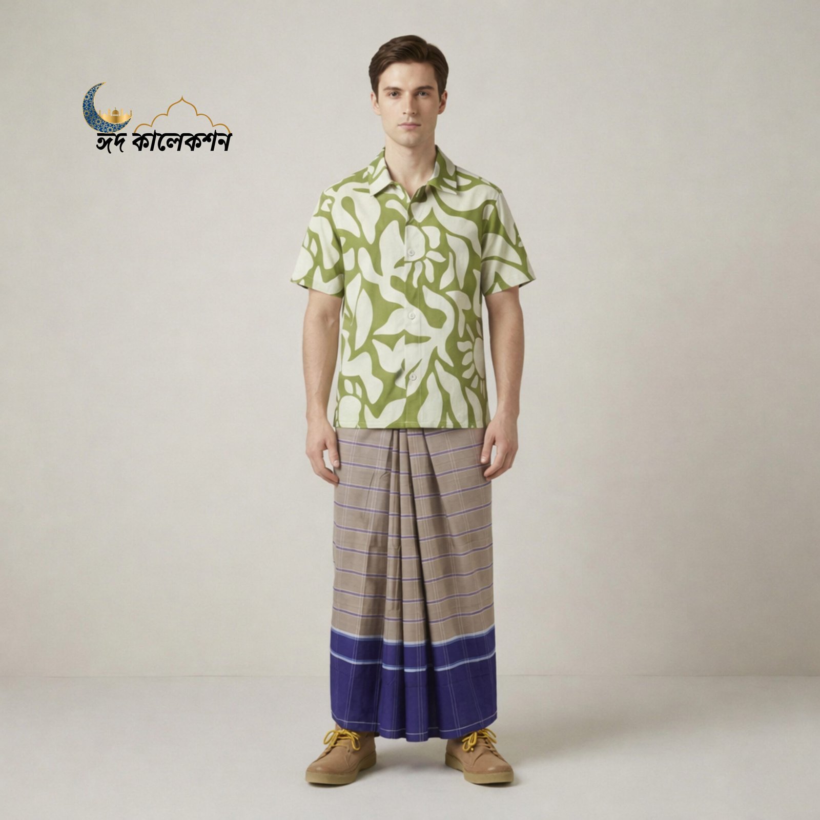 এটির নকশায় আছে ক্লাসিক বাদামী বডি, আকর্ষণীয় নীল বর্ডার এবং সাদা স্ট্রাইপ, যা লুঙ্গিটিকে দেয় আভিজাত্যপূর্ণ চেহারা। ব্যবহৃত ইকো কালার লক প্রযুক্তি রঙকে দীর্ঘস্থায়ী করে এবং কোনো ক্ষতিকারক কেমিকেল ব্যবহৃত হয় না।